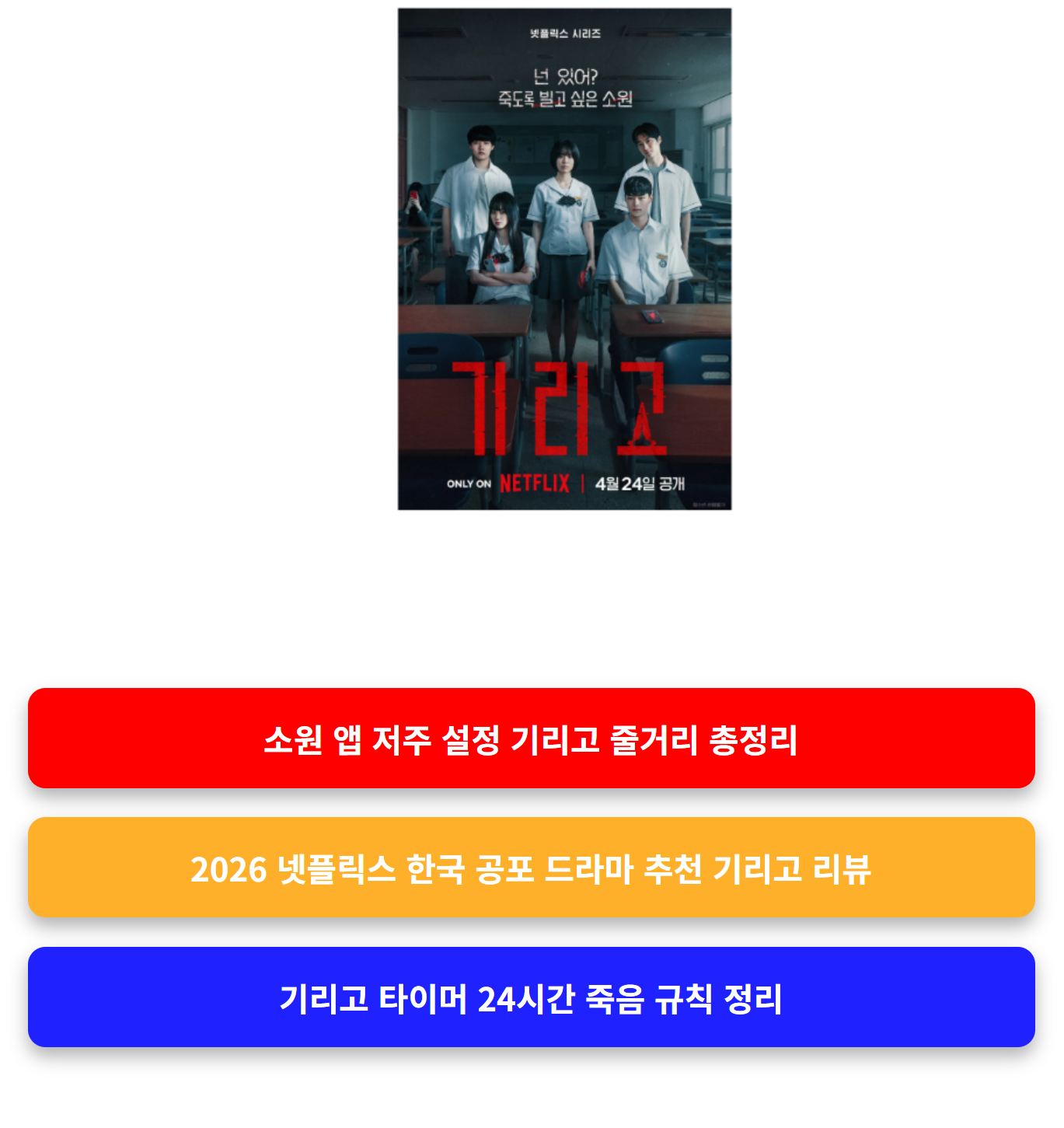 기리고 타이머 24시간 죽음 규칙 정리를 찾고 계신가요? 기리고 타이머 24시간 죽음 규칙 정리는 이 드라마의 공포를 만드는 가장 중요한 요소입니다. 기리고 타이머 24시간 죽음 규칙 정리를 이해하면 왜 등장인물들이 극단적인 선택을 하는지 명확해집니다.