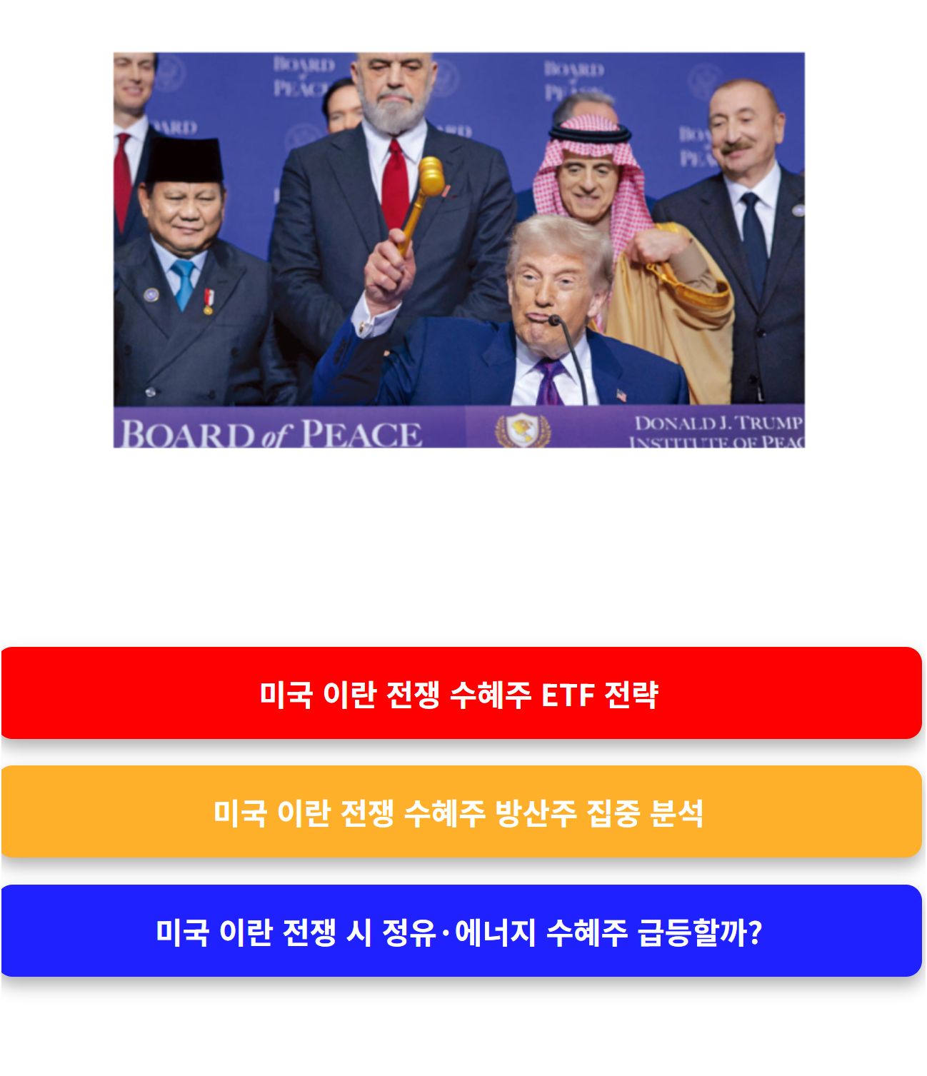 결론적으로 방산, 에너지, 금 ETF는 대표적인 미국 이란 전쟁 수혜주 투자 대안이다. 하지만 과도한 몰빵 투자는 위험하다. 분산과 타이밍, 그리고 리스크 관리가 수익의 핵심이다.