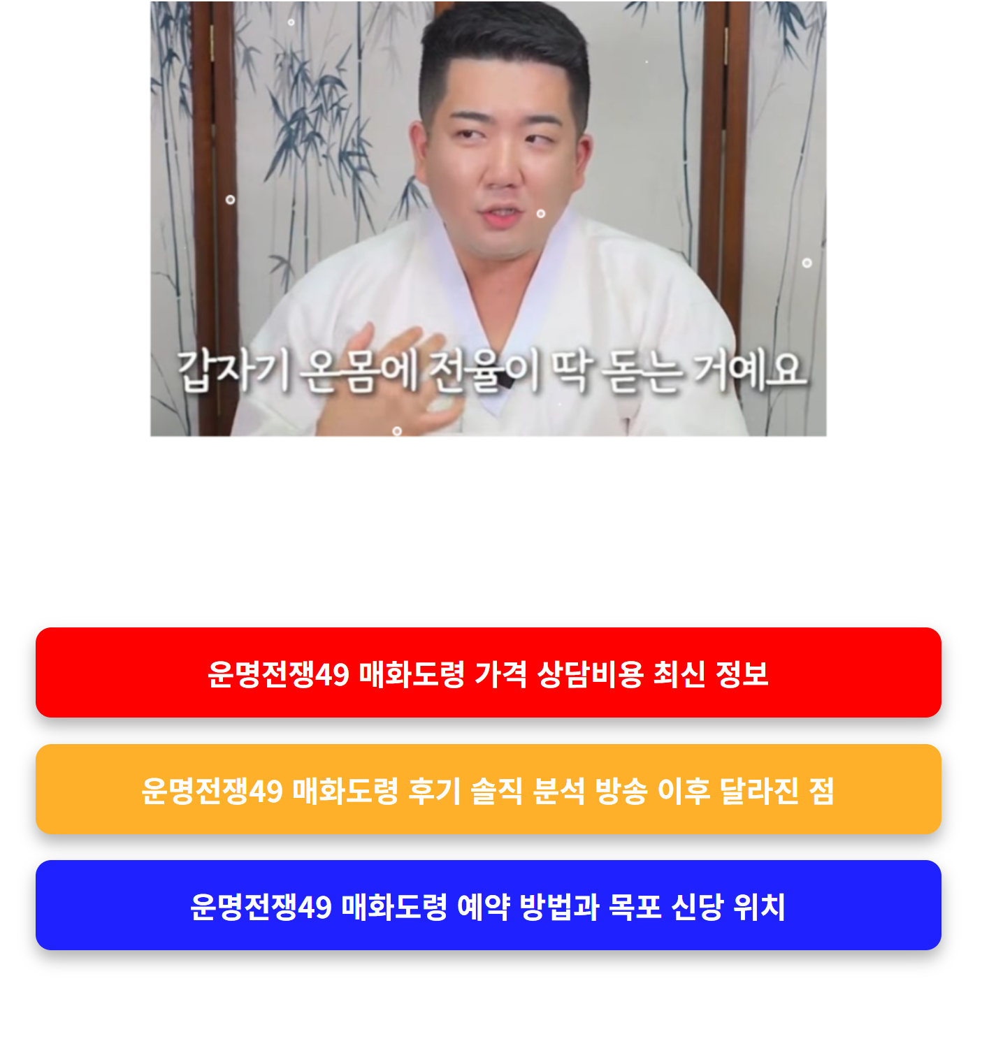 운명전쟁49 매화도령은 방송을 통해 대중적 인지도를 얻었지만, 실제 상담은 어디까지나 개인의 선택입니다. 충분히 정보를 확인한 뒤 결정하는 것이 중요합니다.