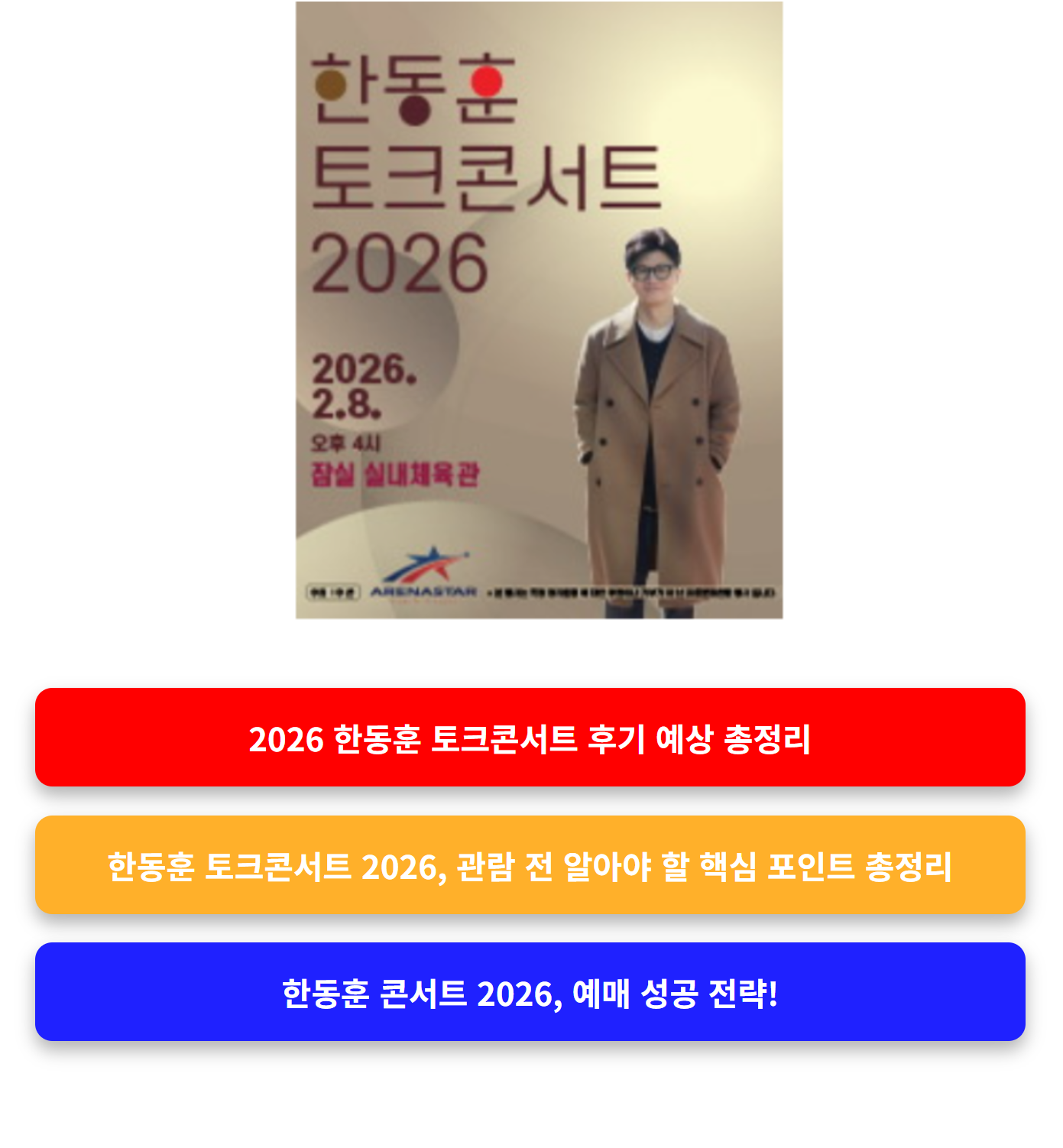 후기 작성 시 태그로는 #한동훈콘서트 #한동훈토크쇼 #잠실실내체육관 #한동훈2026 등을 활용하면 더욱 많은 유입을 기대할 수 있습니다.